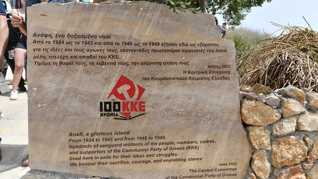 Εγιναν τα αποκαλυπτήρια του μνημείου του ΚΚΕ για τους εξόριστους στην Ανάφη. Τα αποκαλυπτήρια έγιναν από τον Δημήτρη Κουτσούμπα και τον δημιουργό του, γλύπτη Αντώνη Μυρωδιά.