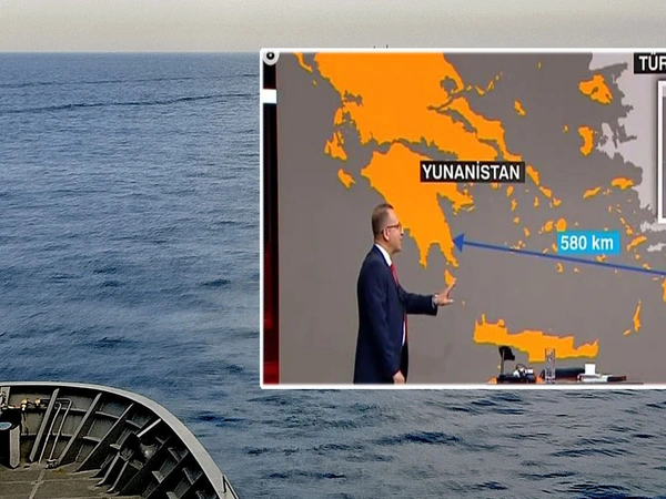 Σε άλλο σημείο της εκπομπής, ο διευθυντής της Hurriyet υπεραμύνεται του τουρκικού αφηγήματος για το Καστελόριζο, χαρακτηρίζοντας «έκτρωμα» το γεγονός πως το νησί ανήκει στην Ελλάδα. «Μα τι είναι αυτό; Μπορώ να πάω κολυμπώντας στο Καστελόριζο;» διερωτήθηκε, δείχνοντας τη θέση του νησιού στον χάρτη και συνεχίζοντας στον ίδιο προκλητικό τόνο: «Μα δες εδώ. Στην πραγματικότητα το να ανήκει αυτό το νησί στην Ελλάδα είναι ένα έκτρωμα».