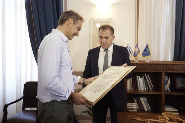 Ο Κυριάκος Μητσοτάκης επισκέφθηκε στη συνέχεια το δημαρχείο Καλαμάτας, όπου τον υποδέχθηκε ο Δήμαρχος Καλαμάτας Θανάσης Βασιλόπουλος.