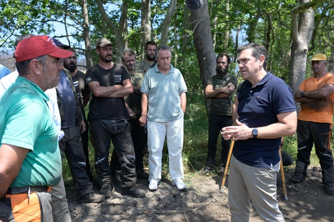 Ο πρόεδρος του ΣΥΡΙΖΑ υποστήριξε ότι «αυτό που συμβαίνει με τη Βόρεια Εύβοια είναι ενδεικτικό της ανικανότητας της πολιτείας και του κράτους να επουλώσει πληγές και να θέσει σε προτεραιότητα έναν σχεδιασμό που μπορεί να έχει μια στοιχειώδη αποτελεσματικότητα για τους πολίτες». Τόνισε ότι δεν μπορεί να έχουν περάσει δέκα μήνες «και να μην έχουμε δει ακόμα να έχει πέσει ένα κυβικό μέτρο μπετόν για να γίνουν αντιπλημμυρικά έργα». Δεν μπορεί να έχουν περάσει δέκα μήνες, προσέθεσε, «και να είμαστε ακόμα στις υποσχέσεις που αφορούν την επόμενη δεκαετία για έργα, που είναι χρήσιμα αλλά μέχρι να έρθει η επόμενη δεκαετία για να δούμε υποδομές, οδικό δίκτυο, πολεοδομικό σχεδιασμό και σοβαρές μελέτες για το δάσος, πρέπει να δούμε πώς θα ζήσει αυτός ο κόσμος εδώ που κάηκε το βιος του, που έχασε τις καλλιέργειες του, τα ζώα τους, οι ρητνιοπαραγωγοί έχασαν τη δυνατότητα για εισόδημα». Είπε ότι έχει περάσει σχεδόν ένας χρόνος και ακόμα δεν έχει ξεκινήσει το πρόγραμμα που θα τους εντάξει σε μια διαδικασία για να μπορούν να έχουν ένα εισόδημα, ενώ «όταν ξεκινήσει θα αφορά τους 25 απ' τους 200».