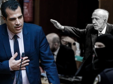 Τον χαιρετισμό του τον επανέλαβε και την περασμένη Παρασκευή (7/10) όταν σήκωσε επιδεικτικά μπροστά στη Μάγδα Φύσσα το χέρι σε ναζιστικό χαιρετισμό με την έδρα να αποχωρεί από την αίθουσα.