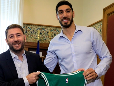 Ο Ενές Καντέρ δώρισε στον Πρόεδρο του ΠΑΣΟΚ-ΚΙΝΑΛ μια φανέλα των Boston Celtics με το όνομά του (Freedom). «Το πράσινο είναι το αγαπημένο μου χρώμα», ανέφερε ο Ενές Καντέρ. «Και δικό μου αγαπημένο, καθώς είναι το χρώμα του κόμματός μας» σημείωσε ο κ. Ανδρουλάκης. Από την πλευρά του, ο πρόεδρος του ΠΑΣΟΚ-ΚΙΝΑΛ του πρόσφερε ένα σελιδοδείκτη από το Μουσείο της Ακρόπολης με χαραγμένο πάνω του ένα κλαδί ελιάς, σύμβολο ειρήνης και ευημερίας.