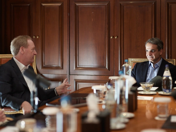Ο πρωθυπουργός Κυριάκος Μητσοτάκης συναντήθηκε το πρωί με τον πρόεδρο της Microsoft, Brad Smith, στο περιθώριο των εργασιών του forum «The Trilateral Commission».