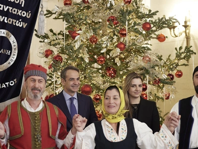 Κάλαντα της Πρωτοχρονιάς και παραδοσιακά τραγούδια από τη Μάνη άκουσαν στο Μέγαρο Μαξίμου ο πρωθυπουργός Κυριάκος Μητσοτάκης και η κόρη του Σοφία. Ο κ. Μητσοτάκης αντάλλαξε ευχές για καλή χρονιά και πρωτοχρονιάτικα δώρα με τα μέλη της Eνωσης Απανταχού Μανιατών «Η Μάνη».