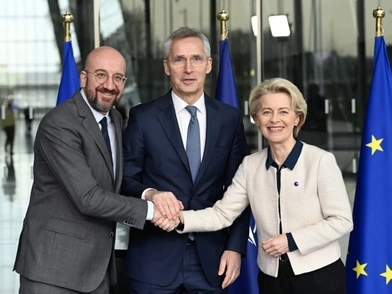 Με φόντο τον πόλεμο στην Ουκρανία, κορυφαίοι αξιωματούχοι του ΝΑΤΟ και της ΕΕ δεσμεύθηκαν να επεκτείνουν τη συνεργασία ανάμεσα στους δύο θεσμούς, με κοινή δήλωσή τους που υπογράφηκε σήμερα στις Βρυξέλλες. Η συνεργασία «είναι περισσότερο σημαντική παρά ποτέ», δήλωσε ο Γενικός Γραμματέας του ΝΑΤΟ Γενς Στόλτενμπεργκ μετά την υπογραφή της δήλωσης στο αρχηγείο της συμμαχίας, δίπλα στην πρόεδρο της Ευρωπαϊκής Επιτροπής Ούρσουλα φον ντερ Λάιεν και τον πρόεδρο του Ευρωπαϊκού Συμβουλίου Σαρλ Μισέλ.