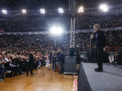 Στο κατάμεστο ΣΕΦ πραγματοποιήθηκε η μεγάλη συναυλία-αφιέρωμα του ΚΚΕ στον Σταύρο Ξαρχάκο, ο οποίος ανεβαίνοντας στη σκηνή για να διευθύνει χαρακτήρισε την αποψινή βραδιά, ιστορική. «Ιστορική βραδιά γιατί ποτέ στα πολιτισμικά δρώμενα αυτής της χώρας δεν συνέβη αυτό το γεγονός που συμβαίνει απόψε εδώ. Ακόμα και το ΚΚΕ ξεπέρασε τον χαρακτηρισμό της προόδου και μπήκε στη σφαίρα της υπέρβασης. Μια υπέρβαση που χρειάζεται κότσια για να την κάνεις. Και το μόνο κόμμα που έχει κότσια όχι μόνο να την κάνει αλλά και να την υλοποιήσει είναι το Κομμουνιστικό Κόμμα Ελλάδας», είπε χαρακτηριστικά ο συνθέτης καταχειροκροτούμενος από χιλιάδες κόσμου. Ο Ξαρχάκος ευχαρίστησε «από τα βάθη της καρδιάς» του τον Δ. Κουτσούμπα για την πρωτοβουλία, πριν παρουσιάσει στο κοινό την ορχήστρα και τους καλλιτέχνες.