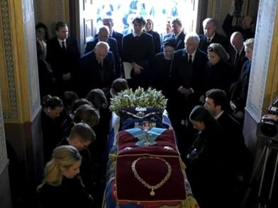 Ολοκληρώθηκε σήμερα ο ενταφιασμός του τέως βασιλιά Κωνσταντίνου στα βασιλικά κοιμητήρια του Τατοΐου δίπλα στους τάφους των γονέων του, Παύλου και Φρειδερίκης, μετά από σχετικό αίτημα που είχε κάνει ο ίδιος. Η «μαραθώνια» διαδικασία που άρχισε από τη Μητρόπολη Αθηνών, όπου η σορός του έκπτωτου μονάρχη τέθηκε σε λαϊκό προσκύνημα για πέντε ώρες, ολοκληρώθηκε στο κοιμητήριο του ναού της Αναστάσεως στον λόφο του «Παλαιοκάστρου» στο Τατόι με το τρισάγιο της οικογένειας. Αίσθηση κατά τη διάρκεια του τρισάγιου προκάλεσε η στιγμή που παιδιά και εγγόνια, πέρα από την Πριγκίπισσα Άννα Μαρία γονάτισαν γύρω από το φέρετρο.