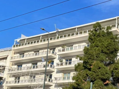 Μεσίστια κυματίζει η ελληνική σημαία έξω από το σπίτι που διέμενε ο τέως βασιλιάς Κωνσταντίνος με τη σύζυγό του Αννα Μαρία, επί της λεωφόρου Βασιλίσσης Σοφίας, στο κέντρο της Αθήνας. Στην εν λόγω πολυκατοικία, είχαν μείνει ο Κωνσταντίνος Γλύξμπουργκ και η Αννα Μαρία, μετά την επιδείνωση της υγείας του έκπτωτου μονάρχη, με αποτέλεσμα να αφήσουν το σπίτι τους στο Πόρτο Χέλι και να μετακομίσουν στο πολυτελές ρετιρέ των 250 τ.μ. στο εν λόγω μεγαλοπρεπές κτίριο στο κέντρο της πρωτεύουσας, το οποίο τους είχε παραχωρήσει μια πολύ γνωστή εφοπλιστική οικογένεια, με την οποία η τέως βασιλική οικογένεια συνδέεται με βαθιά φιλία.