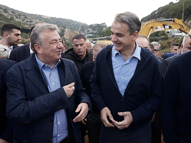 Ένα από τα εργοτάξια όπου έχουν αρχίσει οι εργασίες για την κατασκευή του Βόρειου Οδικού Αξονα Κρήτης, που θα συνδέει τον Κίσσαμο, στο δυτικό άκρο της Κρήτης, με τη Σητεία στο ανατολικό, επισκέφτηκε ο Κυριάκος Μητσοτάκης, στο πλαίσιο της περιοδείας του στην Περιφερειακή Ενότητα Ηρακλείου. Ο πρωθυπουργός ενημερώθηκε για την πρόοδο στο τμήμα Νεάπολη - Αγιος Νικόλαος, ένα από τα πέντε επιμέρους τμήματα του νέου αυτοκινητοδρόμου, μήκους 14 χιλιομέτρων, το οποίο συμβασιοποιήθηκε τον περασμένο Σεπτέμβριο και πλέον γίνεται πραγματικότητα μέσω δημόσιας επένδυσης ύψους 186 εκατομμυρίων ευρώ, που καλύπτεται πλήρως από πόρους του Ταμείου Ανάκαμψης.