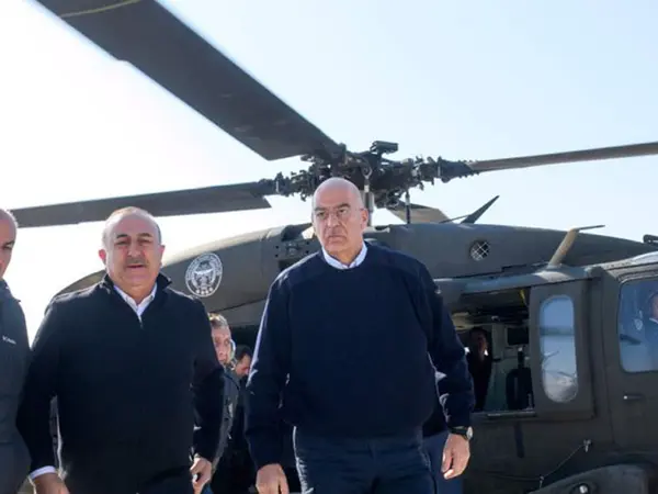 Ο Τσαβούσογλου έσπευσε να αγκαλιάσει τον Νίκο Δένδια όταν κατέβηκε από το αεροσκάφος ενώ στις δηλώσεις που έκαναν οι δύο ΥΠΕΞ στη συνέχεια, και πριν επιθεωρήσουν τις πληγείσες περιοχές από το ελικόπτερο, αναφέρθηκε αφενός στη «συμπαράσταση και την αλληλεγγύη του ελληνικού λαού στον δικό μας» αφετέρου στην επόμενη μέρα τονίζοντας πως «Ελπίζω να καταβάλλουμε κάθε δυνατή προσπάθειες για να έχουμε διάλογο από εδώ και πέρα ώστε να εξαλειφθούν οι όποιες διαφορές ανάμεσά μας».