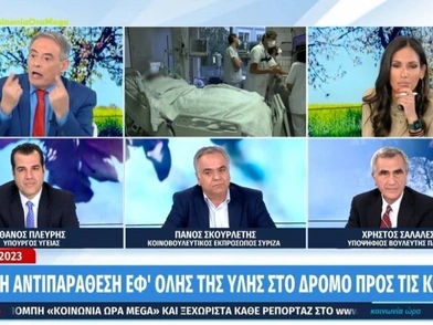 Ανέβηκαν οι τόνοι στην πρωινή εκπομπή του Mega, όπου στο στούντιο βρίσκονταν ο Θάνος Πλεύρης και ο Πάνος Σκουρλέτης και είχαν σκληρή πολιτική αντιπαράθεση για την στελέχωση των νοσοκομεiων και τις ελλείψεις. «Τείνει κάθε νοσοκομείο μας να γίνει “σταθμός Λάρισας”» είπε ο κοινοβουλευτικός εκπρόσωπος του ΣΥΡΙΖΑ με τον υπουργό Υγείας να του απαντά να μην προσβάλλει νοσηλευτές και γιατρούς και ακολούθησε έντονος διάλογος.