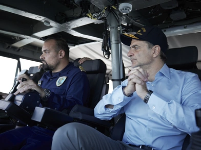 Τον πρωθυπουργό συνόδευαν ο ΥΕΘΑ Νίκος Παναγιωτόπουλος, ο ΥΦΕΘΑ Νίκος Χαρδαλιάς, ο Αρχηγός ΓΕΕΘΑ Στρατηγός Κωνσταντίνος Φλώρος, ο Αρχηγός ΓΕΝ Αντιναύαρχος Ιωάννης Δρυμούσης, ο Διοικητής της ΔΥΚ Πλοίαρχος Κωνσταντίνος Νασσόπουλος και ο Σύμβουλος Εθνικής Ασφαλείας, Θάνος Ντόκος.