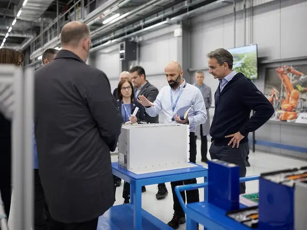 Ο Κυριάκος Μητσοτάκης ξεναγήθηκε από τον Διευθύνοντα Σύμβουλο Λάμπρο Μπίσαλα στη μονάδα παραγωγής μπαταριών μολύβδου, τη μεγαλύτερη στον κόσμο, και στη συνέχεια στη μονάδα κατασκευής μπαταριών νεότερης τεχνολογίας με λίθιο. Επισημάνθηκε η σημασία της έμφασης στην έρευνα και την ανάπτυξη, ειδικά σε τεχνολογίες αιχμής όπως η ανάπτυξη αποδοτικών συστημάτων αποθήκευσης ενέργειας, τα οποία μεταξύ άλλων θα συνεισφέρουν καταλυτικά στην πράσινη μετάβαση και θα αυξήσουν δραστικά τη δυνατότητα ανανεώσιμων πηγών να καλύπτουν τις ανάγκες νοικοκυριών και επιχειρήσεων.