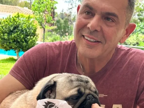 Συγκεκριμένα, ανέβασε selfie με τον Μπελμοντό να κάθονται στην αυλή του σπιτιού του, να τον ταΐζει στο στόμα πατάτες τηγανιτές και να χρησιμοποιεί το ψηφοδέλτιο του ΠΑΣΟΚ-Κίνημα Αλλαγής για χαρτοπετσέτα.