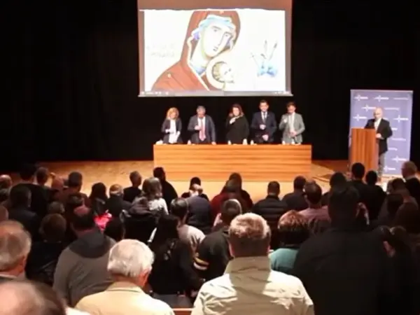 Μάλιστα, μια τεράστια εικόνα της Παναγίας με τον Ιησού βρέφος βρίσκεται σε περίοπτη θέση στο βάθος της αίθουσας.