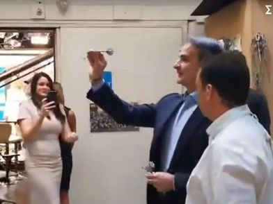 Συγκεκριμένα, ο κ. Μητσοτάκης, σε ένα από τα διαλείμματα της συνέντευξης που έδωσε στην εκπομπή «Καλημέρα», δεν έχασε την ευκαιρία να παίξει βελάκια σε έναν στόχο που έχουν τοποθετήσει οι εργαζόμενοι στον τηλεοπτικό σταθμό του Φαλήρου.