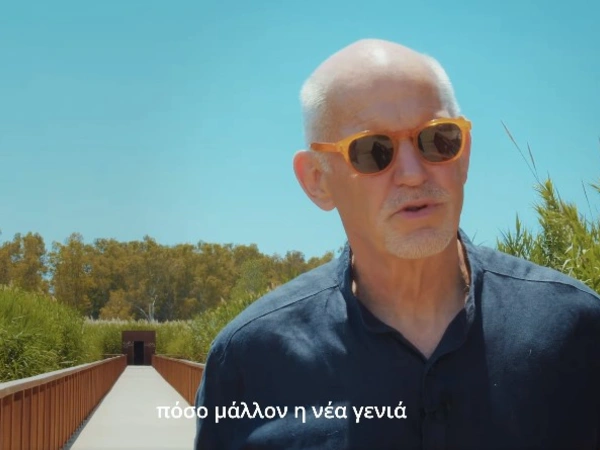 Ο Γιώργος Παπανδρέου περπατά μέσα σε καλαμιές στο βίντεο φορώντας πορτοκαλί γυαλιά ηλίου και λέει «η Ελλάδα, η Αχαΐα, ο Ελληνισμός, πόσω μάλλον η νέα γενιά που έχει ταλέντο, που έχει κέφι, που έχει γνώσεις αλλά βρίσκει πάντα μπροστά της τεράστια εμπόδια από ένα κράτος πελατειακό, υδροκέφαλο».