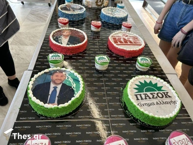 Πάταγο έχουν κάνει στη Θεσσαλονίκη οι τούρτες, οι οποίες έχουν φωτογραφίες με τους πολιτικούς αρχηγούς και τα κόμματα. Όπως αναφέρει το thes.gr, γνωστό ζαχαροπλαστείο στον Εύοσμο με αφορμή τις εθνικές εκλογές που βρίσκονται σε εξέλιξη, δημιούργησε τούρτες που μπορούν να αγοράσουν όλοι οι υποστηρικτές, του κάθε κόμματος, ανεξαιρέτως.