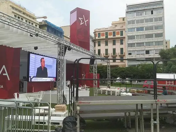 Λίγο πριν την ανακοίνωση των exit polls για το αποτέλεσμα των σημερινών εκλογών στο περίπτερο του ΣΥΡΙΖΑ στην πλατεία Κλαυθμώνος επικρατεί η απόλυτη... ηρεμία. Μόνο ένας πολίτης κάθεται μπροστά στην οθόνη όπου θα προβληθούν τα αποτελέσματα, ενώ όλα τα υπόλοιπα καθίσματα είναι άδεια.