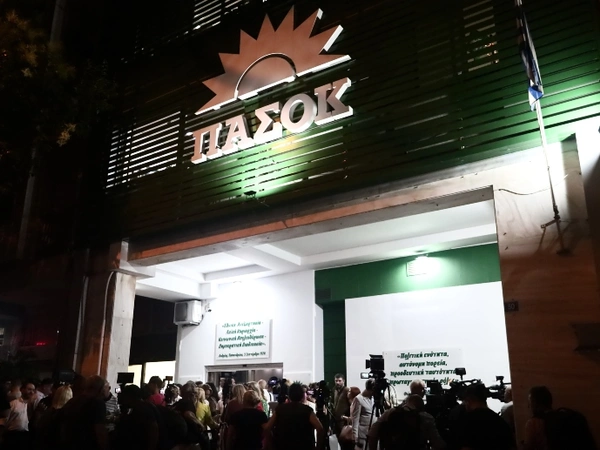 Ένταση προκλήθηκε λίγο πριν τις 23:30 έξω από τα γραφεία του ΠΑΣΟΚ στη Χαριλάου Τρικούπη, όπου ήταν συγκεντρωμένοι δημοσιογράφοι και υποστηρικτές του κόμματος.