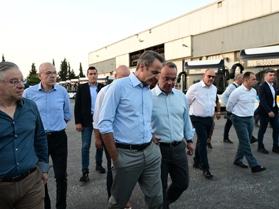 Το αμαξοστάσιο των ηλεκτρικών λεωφορείων στου Ρέντη επισκέφθηκε αιφνιδιαστικά το πρωί της Τετάρτης, 3 Ιουλίου, ο πρωθυπουργός Κυριάκος Μητσοτάκης. Συνοδευόμενος από τους υπουργούς Χρήστο Σταϊκούρα και Βασίλη Οικονόμου, ενημερώθηκε για τα οχήματα και μίλησε με τους εργαζόμενους.