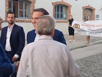 Κατά την άφιξή του, μια ολιγομελής ομάδα της νεολαίας του κόμματος «Νίκη» άνοιξαν πανό για τη Μακεδονία, και φώναξαν συνθήματα κατά του κ. Τσίπρα και όλων όσοι συνυπέγραψαν τη συμφωνία.
