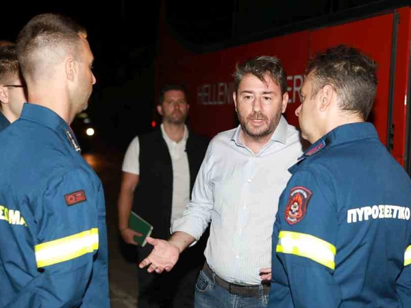 Ο πρόεδρος του ΠΑΣΟΚ-Κινήματος Αλλαγής, Νίκος Ανδρουλάκης, βρέθηκε κοντά στους πυροσβέστες στο κινητό επιχειρησιακό κέντρο «Όλυμπος», στην κεντρική πλατεία της Παλαιάς Πεντέλης.