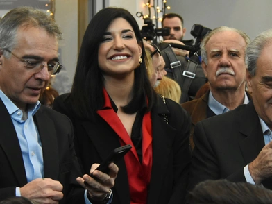 Μετά την ανακοίνωση των αποτελεσμάτων, πολλοί πρόσεξαν μια μελαχρινή γυναίκα πίσω από το νέο δήμαρχο Αθηναίων, αλλά κανείς δεν κατάλαβε ποια ήταν.