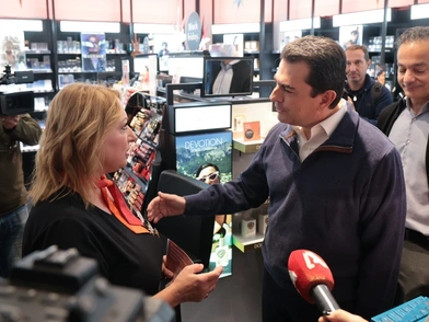 Εμπορικά καταστήματα στο κέντρο της Αθήνας ενόψει των εκπτώσεων στο πλαίσιο της Black Friday επισκέφθηκε ο υπουργός Ανάπτυξης, Κώστας Σκρέκας, συνοδευόμενος από τον πρόεδρο του Εμπορικού Συλλόγου Αθηνών, Σταύρο Καφούνη.