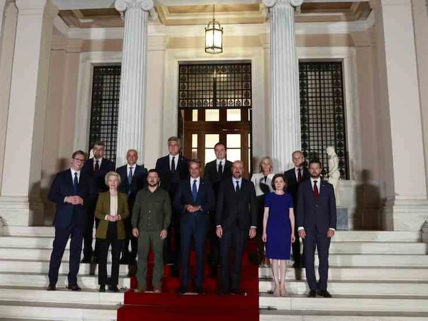 Εμείς ο Πρόεδρος Aleksandar Vučić, η Πρόεδρος Maia Sandu, ο Πρόεδρος Volodymyr Zelenskyy, ο Πρόεδρος Jakov Milatović, ο Πρωθυπουργός Κυριάκος Μητσοτάκης, ο Πρωθυπουργός Ion-Marcel Ciolacu, ο Πρωθυπουργός Albin Kurti, η Πρόεδρος του Υπουργικού Συμβουλίου Borjana Krišto, ο Πρωθυπουργός Dimitar Kovachevski, ο Πρωθυπουργός Nikolai Denkov, και ο Πρωθυπουργός Andrej Plenković, παρουσία του Προέδρου του Ευρωπαϊκού Συμβουλίου και του Προέδρου της Ευρωπαϊκής Επιτροπής, συναντήθηκαν σήμερα στην Αθήνα, είκοσι χρόνια μετά την ιστορική Σύνοδο Κορυφής ΕΕ-Δυτικών Βαλκανίων στη Θεσσαλονίκη, και εξέδωσαν την ακόλουθη δήλωση: