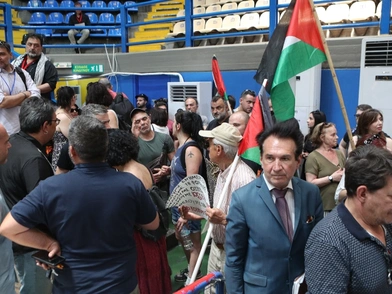 Δυναμική παρέμβαση στο κλειστό Περιστερίου όπου διεξάγεται το Συνέδριο του ΣΥΡΙΖΑ έκαναν σήμερα (14/06) εργαζόμενοι στην «Αυγή» και στον Ρ/Σ «Στο Κόκκινο», οι οποίοι διαμαρτύρονται για το γεγονός ότι παραμένουν απλήρωτοι.