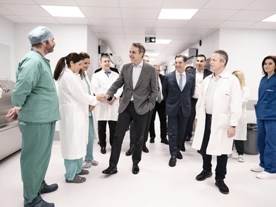 Ο Πρωθυπουργός, συνοδευόμενος από τον Υπουργό Υγείας Άδωνι Γεωργιάδη και τον Υφυπουργό Μάριο Θεμιστοκλέους, ξεναγήθηκε στους νέους χώρους και συνομίλησε με προσωπικό και ασθενείς.