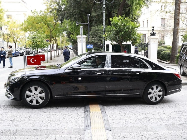 Ο Τούρκος ηγέτης θα έχει στο ένα αεροπλάνο μόνο τις λιμουζίνες του, που είναι οχήματα Mercedes - Maybach. Σύμφωνα με την εκπομπή, ο Ερντογάν διαθέτει συνολικά έξι τέτοιες λιμουζίνες για τις επισκέψεις του στο εσωτερικό και στο εξωτερικό., ωστόσο στην Αθήνα ήρθε με τρεις.