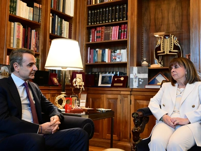 «Η σημερινή συνάντηση είναι ξεχωριστή και διαφορετική από τις συνηθισμένες και θα ήθελα ξεκινώντας να σας ευχαριστήσω όχι μόνο σε θεσμικό αλλά και σε προσωπικό επίπεδο για την άψογη συνεργασία» δήλωσε ο Πρωθυπουργός Κυριάκος Μητσοτάκης κατά τη συνάντησή του με την Πρόεδρο της Δημοκρατίας Κατερίνα Σακελλαροπούλου.