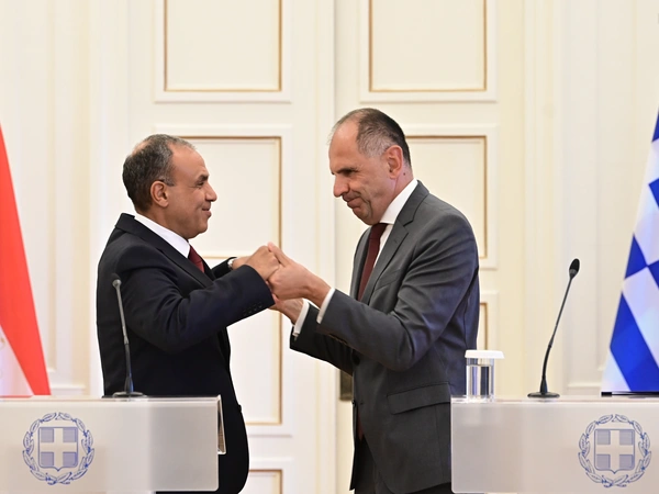 Στις δηλώσεις των δύο υπουργών προς τον Τύπο μετά τις διευρυμένες συνομιλίες μεταξύ των αντιπροσωπειών, ο κ. Γεραπετρίτης τόνισε, «με χαρά και τιμή καλωσορίζω σήμερα στο Ελληνικό Υπουργείο Εξωτερικών τον αγαπητό μου φίλο Υπουργό Εξωτερικών της Αραβικής Δημοκρατίας της Αιγύπτου, Μπαντρ Αμπντελάτι».