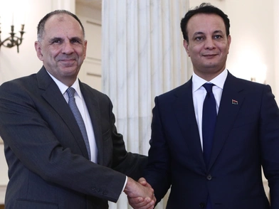 Ο Υπουργός Εξωτερικών, Γιώργος Γεραπετρίτης, συναντήθηκε σήμερα, Δευτέρα 8 Σεπτεμβρίου, με τον Γενικό Διευθυντή του Ταμείου για την Ανάπτυξη και Ανασυγκρότηση της Λιβύης, Belgasem Haftar.
