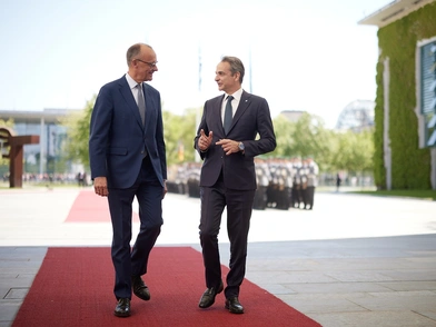 Ο νέος Γερμανός καγκελάριος πάντως είναι αρκετά εγκάρδιος, παρά το μάλλον αυστηρό παρουσιαστικό του. Στον Χατζηβασιλείου, τον οποίον έχει γνωρίσει καλά λόγω του ΕΛΚ, ο Μερτς απευθύνεται με τη φράση "Hallo Tasos", ενώ χθες είχε και σύντομη συζήτηση στα γερμανικά με τον πρέσβη μας στο Βερολίνο Αλέξανδρο Παπαϊωάννου, ο οποίος είναι σχετικά φρέσκος στη γερμανική πρωτεύουσα. Και για τον Μερτς πάντως η χθεσινή υποδοχή Μητσοτάκη ήταν ένα crash test για τις στρατιωτικές τιμές, καθώς ήταν η πρώτη υποδοχή ξένου προσκεκλημένου στο κτίριο της Καγκελαρίας επί των ημερών του.