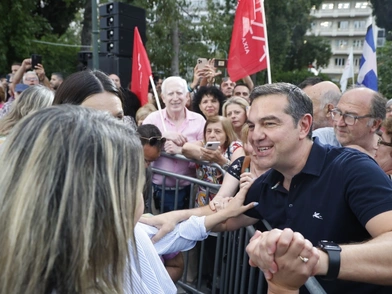 Ιδιαίτερα ευδιάθετος εμφανίστηκε ο Αλέξης Τσίπρας στην κεντρική συγκέντρωση του ΣΥΡΙΖΑ στο Σύνταγμα για την κεντρική προεκλογική ομιλία του Στέφανου Κασσελάκη.