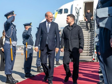 Ο αντιπρόεδρος της ελληνικής κυβέρνησης Κωστής Χατζηδάκης υποδέχθηκε στο αεροδρόμιο τον Πρόεδρο της Ουκρανίας, Βολοντίμιρ Ζελένσκι.
