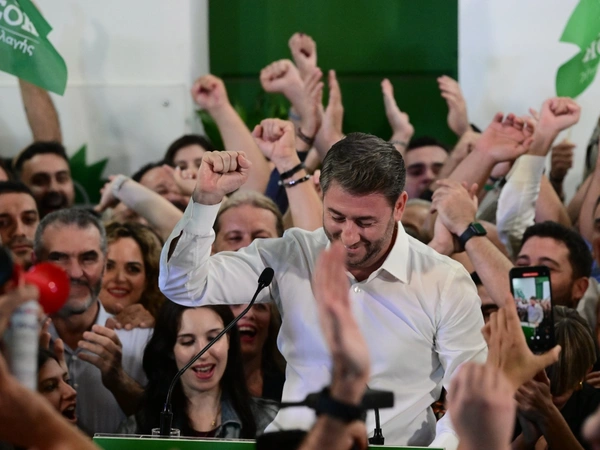 Οι πανηγυρισμοί στη Χαριλάου Τρικούπη κατά την άφιξη του Νίκου Ανδρουλάκη για τη νικητήρια ομιλία του μετά τις εκλογές του ΠΑΣΟΚ ήταν έντονες.
