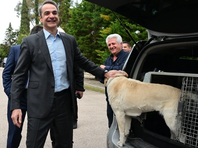 Μία από αυτές, μάλιστα, ήταν κατά τη στιγμή της εξόδου του από το κτίριο, όταν ο Κυριάκος Μητσοτάκης συνάντησε το σκυλί της ΕΛΑΣ, τη Λάρα και είχε μαζί της θερμό χαιρετισμό.