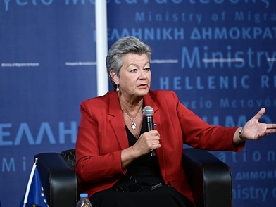 «Είναι πραγματικά εντυπωσιακό το ταξίδι που έχει κάνει η Ελλάδα για να προσπαθήσει να διαχειριστεί τη μετανάστευση. Και αυτό σημαίνει ότι έχουμε λύσει όλες τις προκλήσεις; Όχι φυσικά. Υπάρχουν πάρα πολλές ακόμα» σημείωσε, μεταξύ άλλων, η Ίλβα Γιόχανσον.