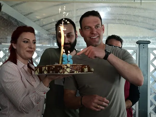 Σύμφωνα με πληροφορίες, τα κεράκια στην τούρτα γενεθλίων είχαν τον αριθμό 35. «Συν ένα, παιδιά, συν ένα», είπε ο Στέφανος Κασσελάκης, ο οποίος στη συνέχεια έσβησε τα κεράκια.