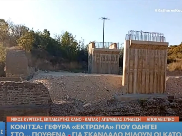 Κοιτάξτε να δείτε τι γίνεται σύμφωνα με τα όσα καταγγέλλουν οι κάτοικοι και ανέδειξε το Open. Εδώ και 5 χρόνια - μπήκαμε στον 6ο - σε περιοχή προστατευόμενη μάλιστα, ξεκίνησε μία γέφυρα και έμεινε στα θεμέλια. Ποτέ δεν προχώρησε και δεν μοιάζει και με γέφυρα. Οι κάτοικοι καταγγέλλουν πώς δεν πάει πουθενά. Και να τελειώσει, κάτι ξεροχώραφα έχει εκεί που πάει να γεφυρώσει. Για το τελεωνείο λίγο παραπέρα, υπάρχει κανονικά δρόμος.