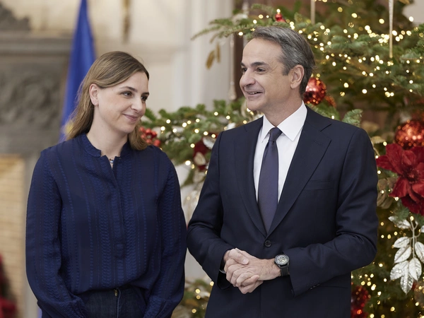 Ο Κυριάκος Μητσοτάκης έχοντας στο πλευρό του, την κόρη του Σοφία, είχε την ευκαιρία να ανταλλάξει με τα μέλη των δύο συλλόγων δώρα και ευχές για το νέο έτος.
