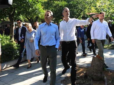Σε κεντρικούς δρόμους της Αθήνας με τον υποψήφιο δήμαρχος της πρωτεύουσας, Κώστα Μπακογιάννη, περπάτησε το πρωί της Πέμπτης (12/10) ο Κυριάκος Μητσοτάκης.