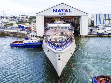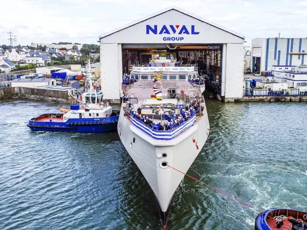 H πρώτη από τις τρεις φρεγάτες Belharra που θα παραλάβει το ελληνικό Πολεμικό Ναυτικό, έπεσε στο νερό, στα ναυπηγεία της Naval Group στη Γαλλία.