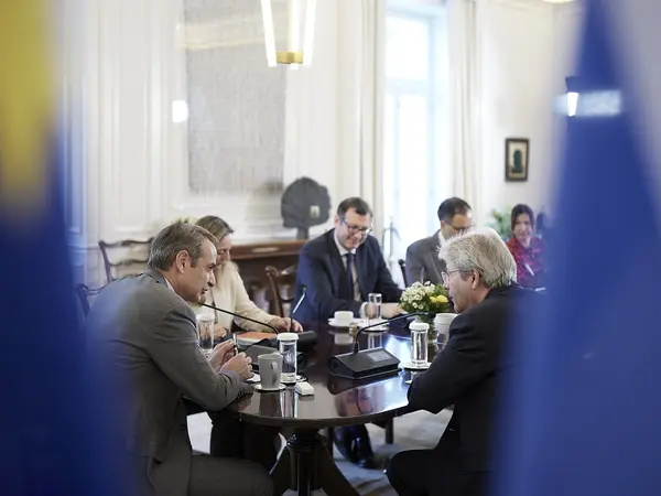 Με τον Επίτροπο Οικονομίας της Ευρωπαϊκής Ένωσης, Πάολο Τζεντιλόνι, συναντήθηκε το πρωί της Τετάρτης (10/04) στο Μέγαρο Μαξίμου ο Κυριάκος Μητσοτάκης.