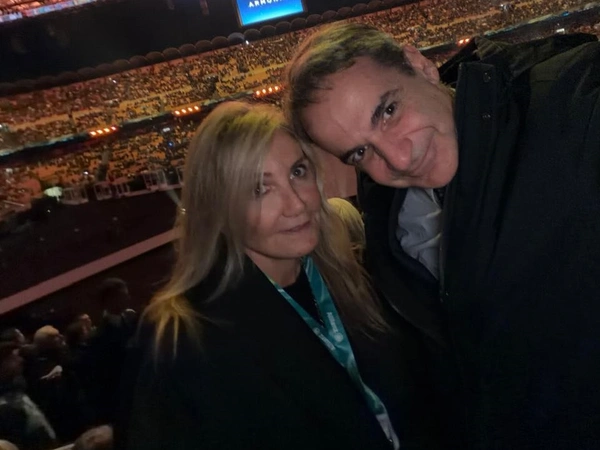Ο πρωθυπουργός ανάρτησε φωτογραφία στα μέσα κοινωνικής δικτύωσης από το Ολυμπιακό Στάδιο του Μιλάνου, στην οποία ποζάρει μαζί με τη σύζυγό του, Μαρέβα.