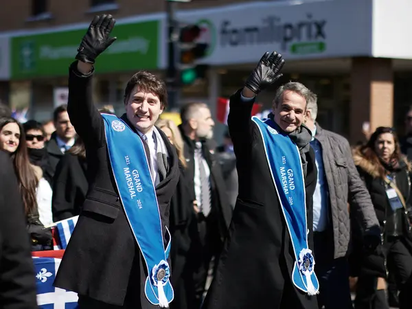 Ο πρωθυπουργός, Κυριάκος Μητσοτάκης, στο πλαίσιο της επίσημης επίσκεψής του στον Καναδά, παρακολούθησε την παρέλαση συλλόγων της Ελληνικής Κοινότητας Μείζονος Μόντρεαλ για την εθνική εορτή της 25ης Μαρτίου, μαζί με τον Καναδό ομόλογό του, Τζάστιν Τριντό.